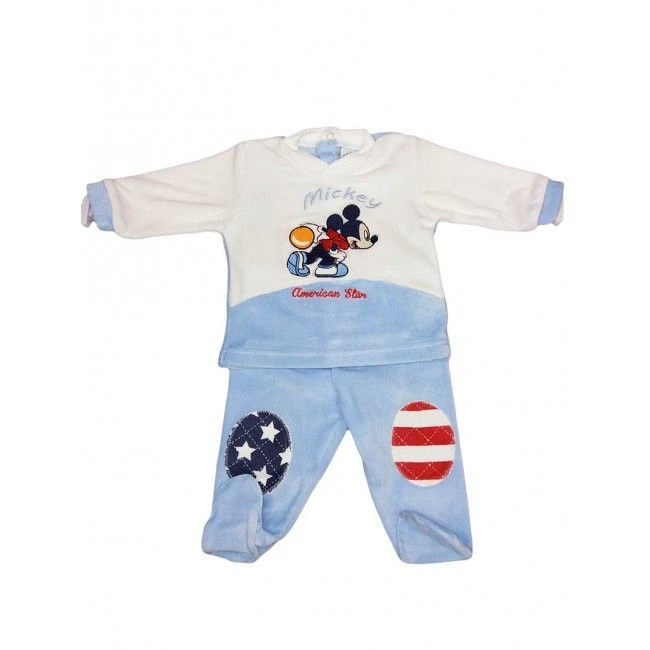 Completo 2pezzi Ciniglia Bimbo Neonato Disney Baby Mickey Panna Cielo 3 M