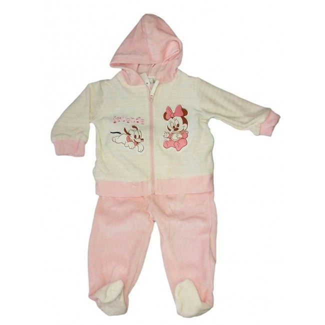 Completo 2pz Ciniglia Bimba Neonato Disney Baby Minnie Panna Rosa 6 M